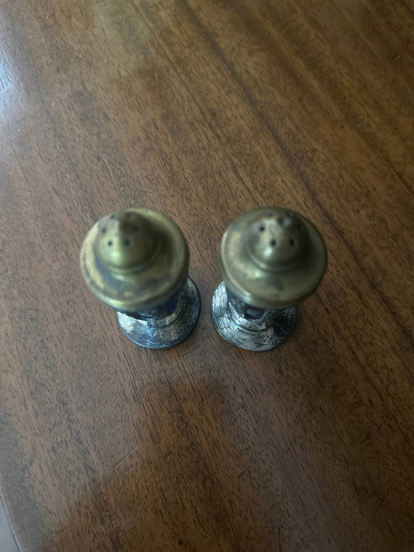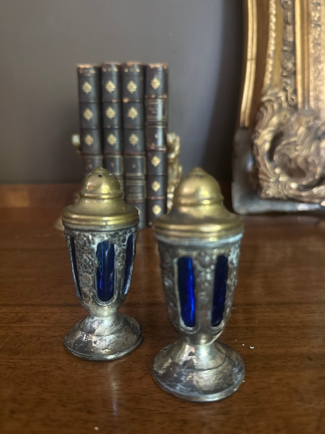 Antique Silverplate and Cobalt Glass Salt & Pepper Shakers – Early 1900s
